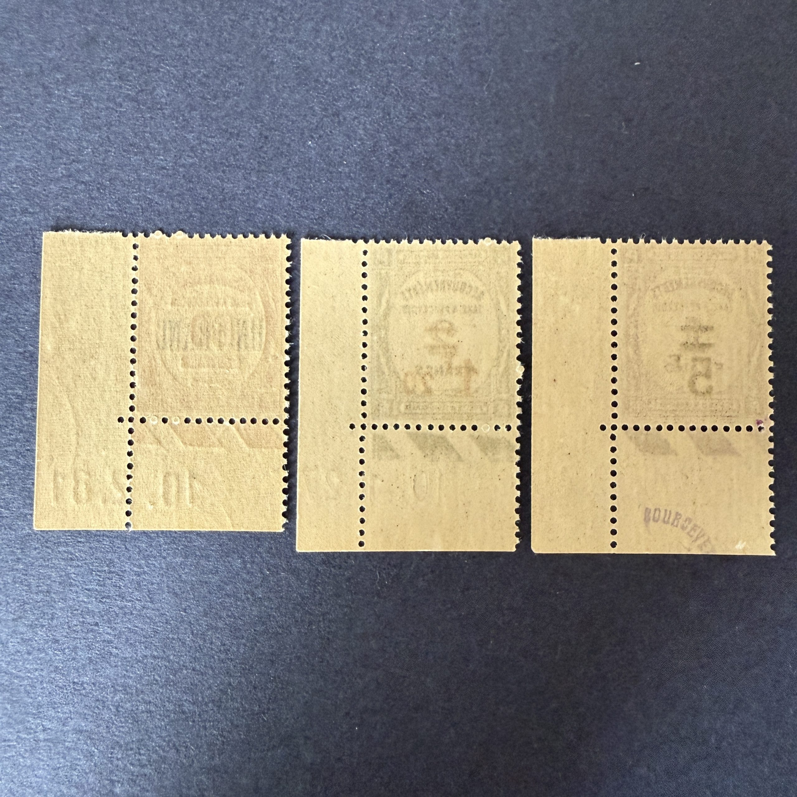 Taxe Y&T 63/65″Recouvrement surchargés » coins datés en neufs ** sans charnière. Superbes.