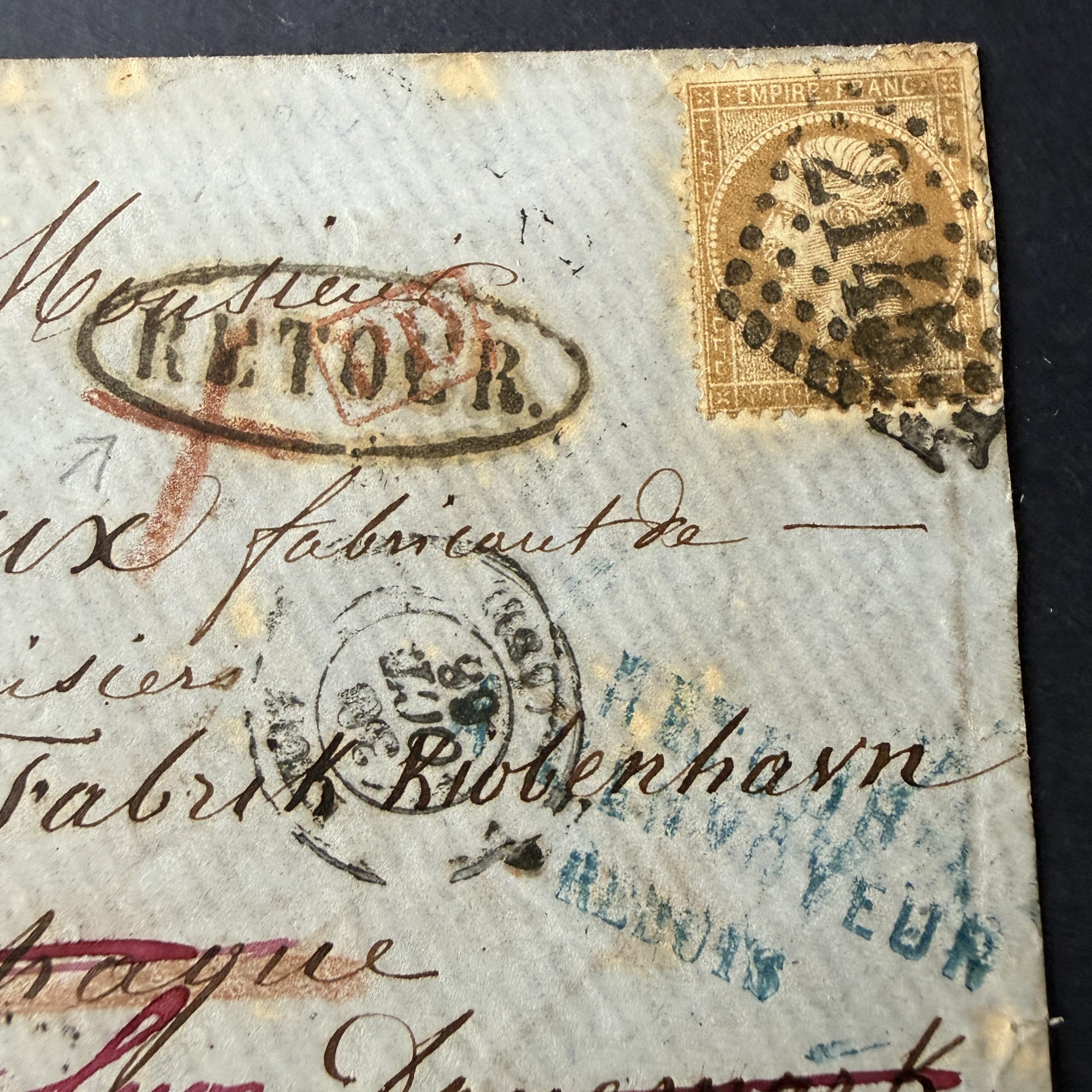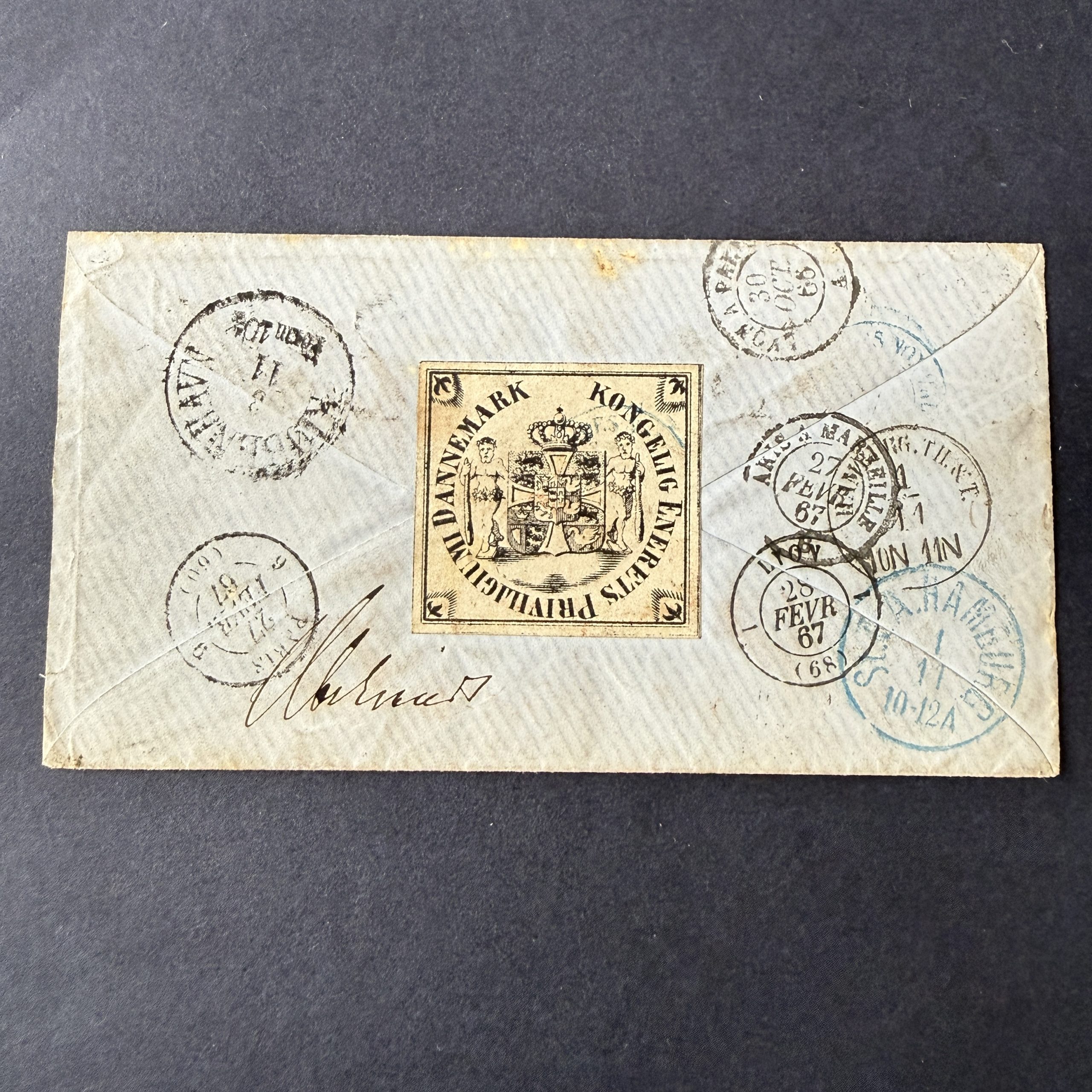 Timbres état global TB. Belle lettre ayant fait un aller retour au Danemark puis placée aux rébuts. Belle étiquette et cachets Danois au verso.