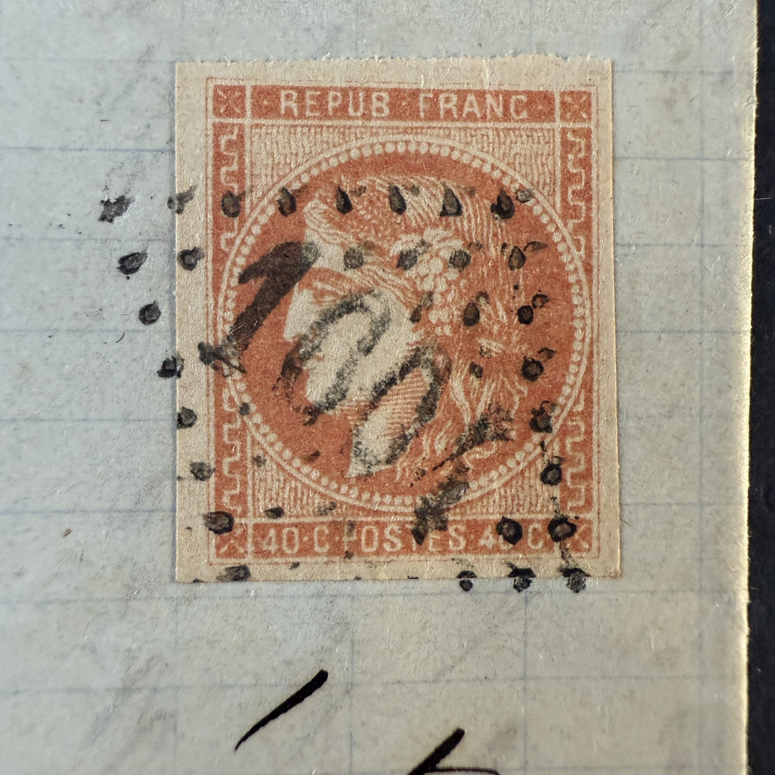 Nous proposons le(s) timbre(s) Y&T 48, « Bordeaux 40c orange » oblitéré sur lettre.