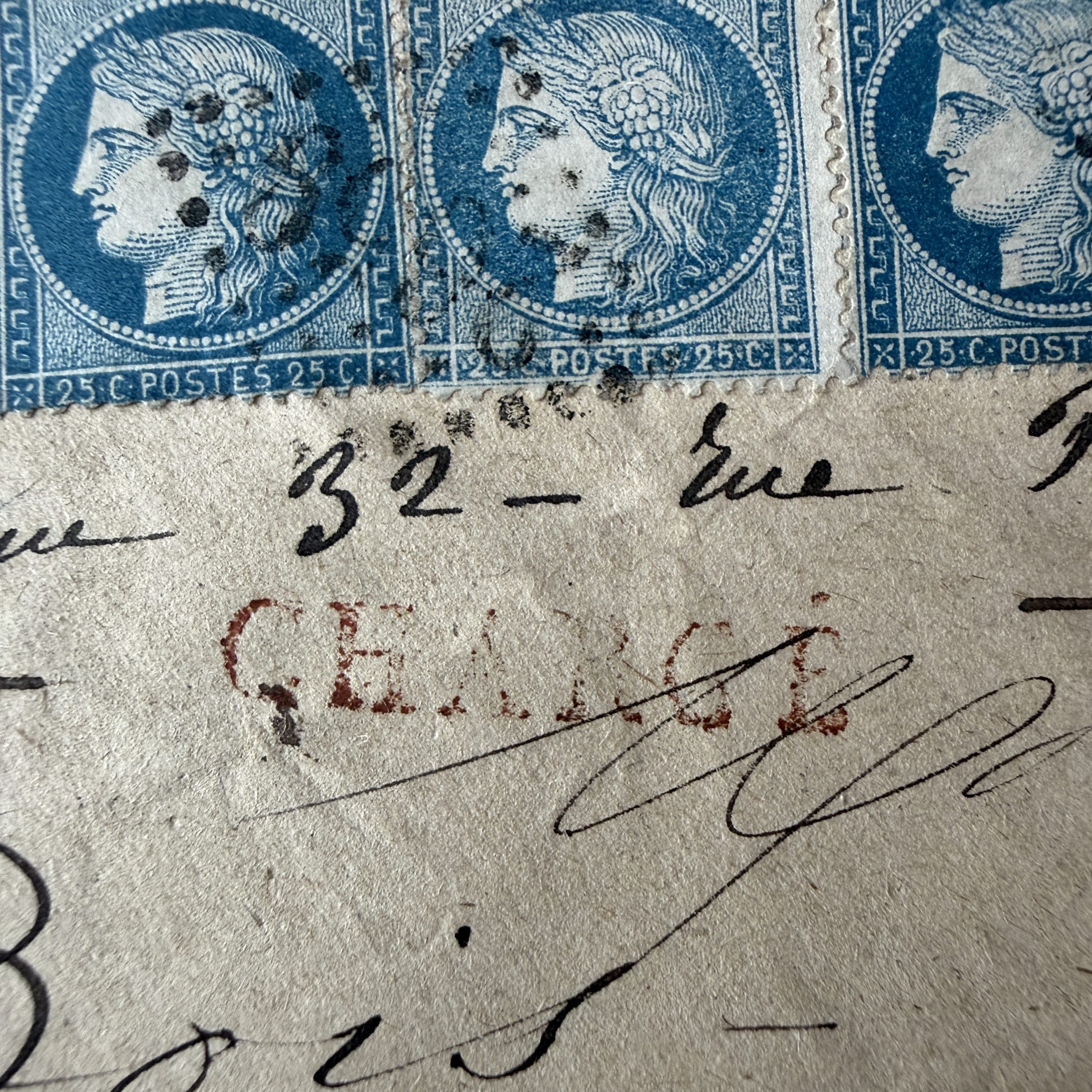 Nous proposons le(s) timbre(s) Y&T 53, 59 et 60 (4 exemplaires) « Cérès dentelés » sur lettre chargée.