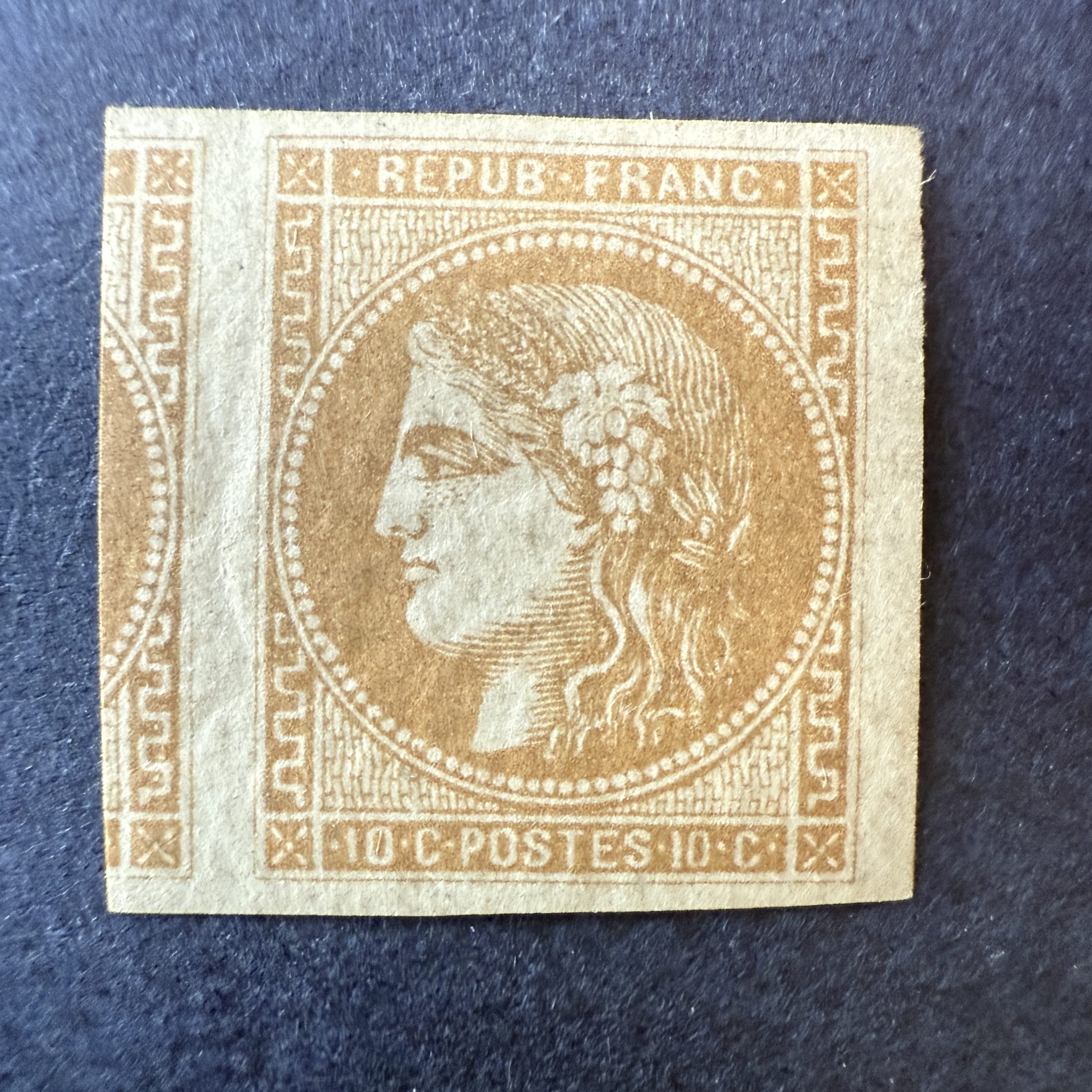 Nous proposons le(s) timbre(s) Yvert 43A « Bordeaux 10c R1 » bord de feuille et voisin en neuf * avec charnière.